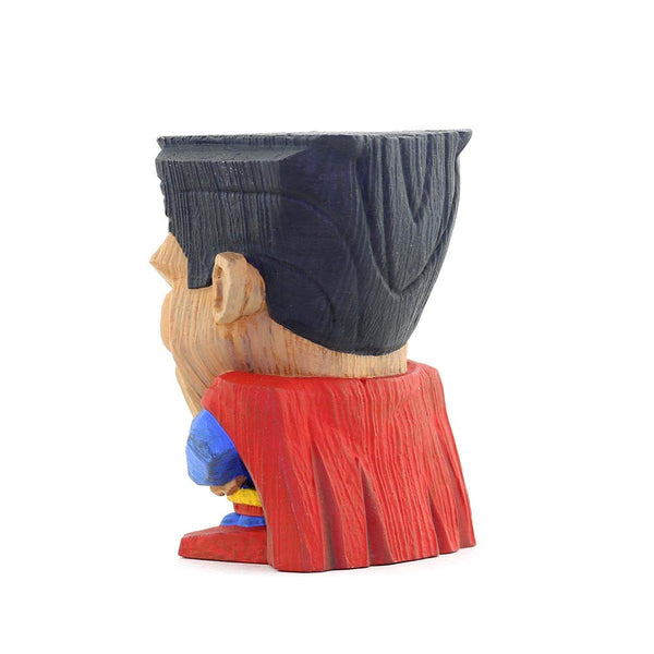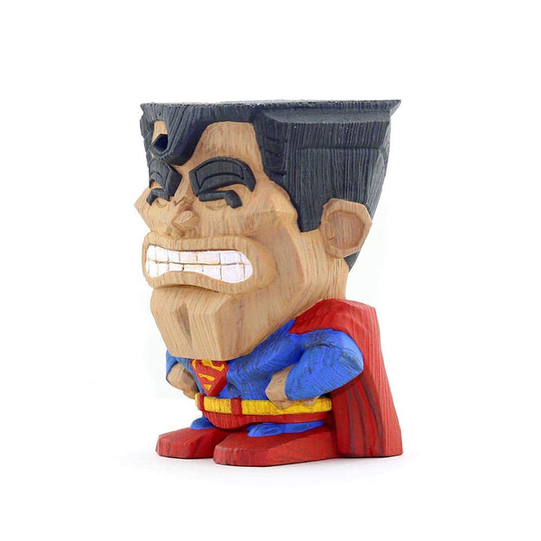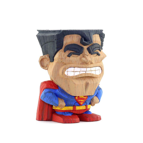 • Wood-carved aesthetic: A warm tiki-inspired look that evokes traditional wood carving while showcasing Superman-themed styling.